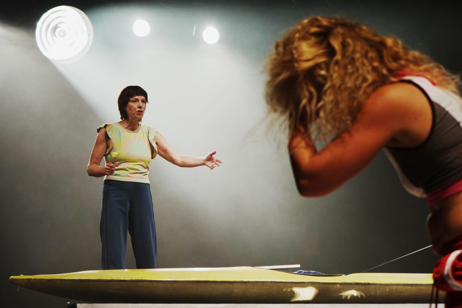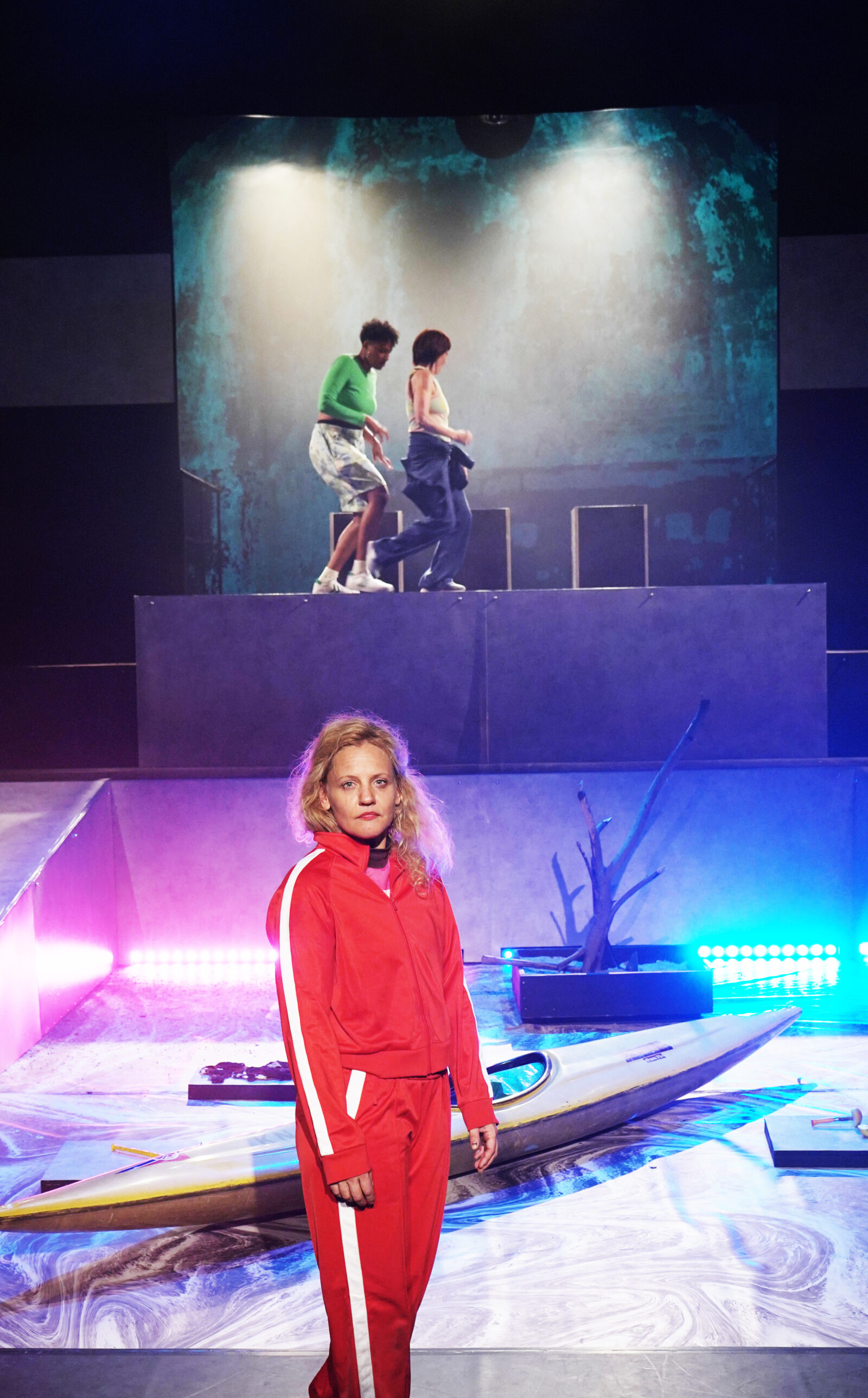 Die Welt steht in Flammen. Drei Frauen am Ufer eines Sees. Gefangen zwischen Wasser und Feuer. Es besteht kaum noch eine Überlebenschance. Doch da wird ein Boot mit zwei Plätzen angespült. Währenddessen verhandelt Medea mit Noah, ob und wie die Gattung Mensch über die Apokalypse zu retten sei, und drei Schauspielerinnen erinnern sich bruchstückhaft oder fragmentarisch an ihr Leben. Und über allem steht die Frage: Wessen Geschichten haben Platz auf dem Boot?