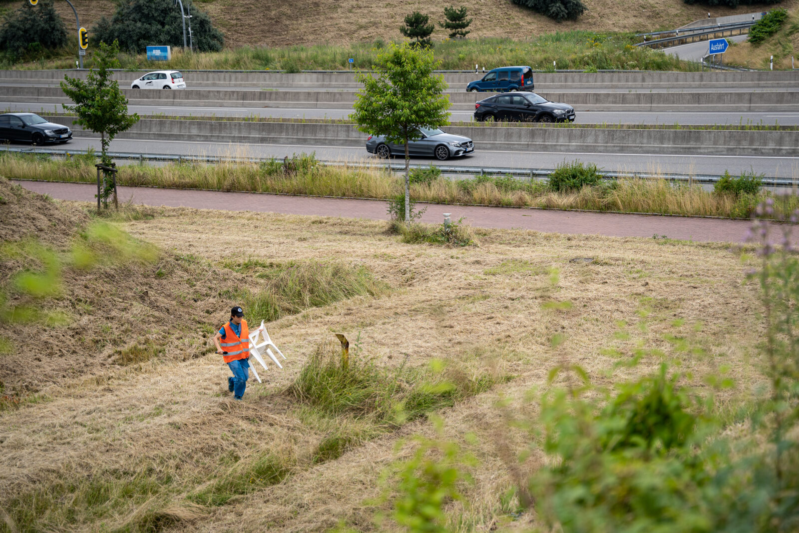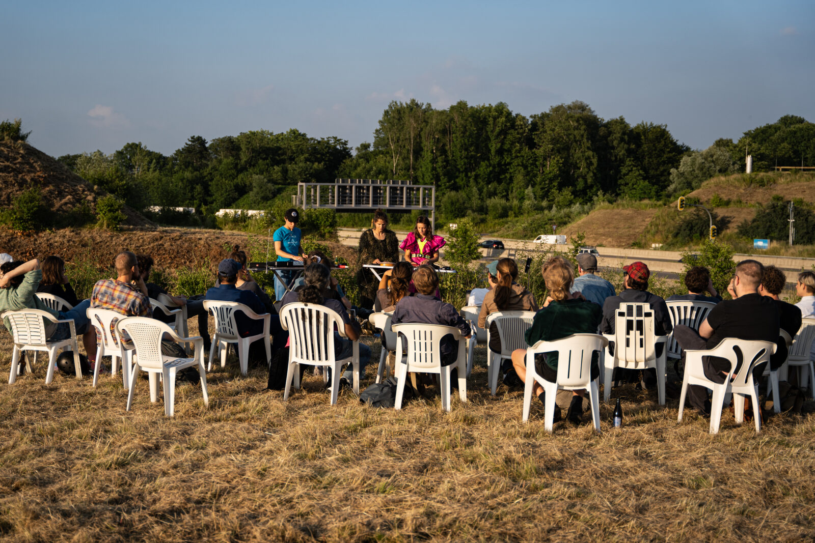 Mit SONIC HIGHWAY lädt MFK Bochum zur Ortsbegehung einer ausgewählten roten Lärmzone ein. Ein Spaziergang führt uns in körperliche und instrumentale Re- und Dissonanzen, mitten hinein in die unverhoffte Hügellandschaft eines Autobahndreiecks. Wir durchqueren und erreichen Orte, die für gewöhnlich nur aus dem vorbeirasenden PKW erhascht werden. Dort, zwischen Unrat und seltenen Gewächsen, formuliert MFK Bochum für ihre Begleiter*innen eine dis-harmonische Antwort auf diese Landschaft.